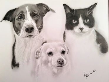 My interest has always been in drawing realism and Creating memories from photos. You know how you can almost never get a group picture of your family or animals? But you get those great individual pictures. I can take all the pictures you get and combine them into one group drawing. Its that easy.